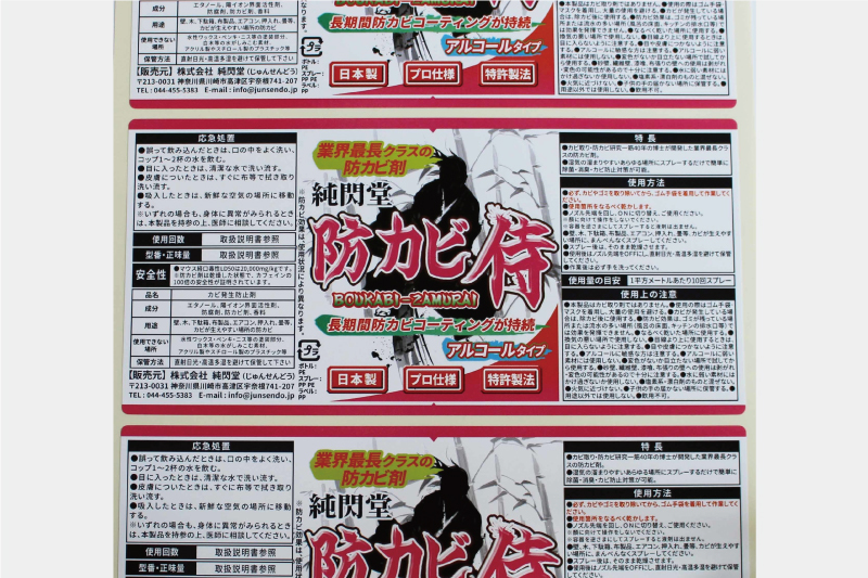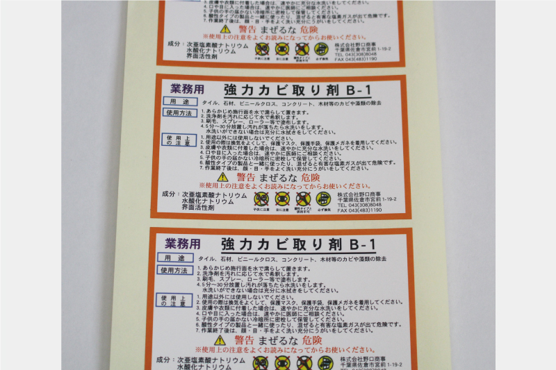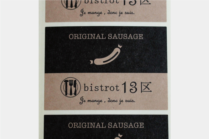 制作事例 シールデザイン制作も承ります。1色¥1000~。カラー4色¥3000~。Illustrator入稿の場合データ作成代は無料です。中国語の制作も承っております。 東京都 アイキャッチシール 5000枚、アートタック紙、訂正用、92×30mm(変形)、グレー1色 東京都 会社名シール 1000枚。アートタック紙、強粘、196×32mm(Rなし)、黒色1色 神奈川県 大根ラベル 1万枚。アートタック紙、強粘、100×70mm(1R)、2色;黒色、赤色 愛知県 和紙食品シール 3000枚。和紙タック、強粘、130×100mm(1R)、金色1色(Dic620) 愛知県 食品内容表示シール 3000枚。上質タック紙、強粘、90×80mm(1R)、黒色1色 群馬県 開業記念シール 3000枚。アートタック紙、強粘、25Φmm(円形)、金箔+赤色1色 東京都 タックフォームラベル(連続伝票) 5000枚。色上質タック紙、普通粘、114.5×58.5mm(2R)、印刷無し 東京都 ソーセージラベル 2000枚。クラフトタック紙、普通粘、80×50mm(0.5R)、黒色1色 大阪府 ソープシール 1000枚。アートタック紙、強粘、40×40mm(1R)、黒色1色 大阪府 肌着表示シール 1000枚。アートタック紙、強粘、40×20mm(1R)、黒色1色 神奈川県 カビ除去剤 2000枚。ユポタック#80μ、強粘、ラミネート無し、175×85mm(2R)、カラー4色 富山県 白エビ白らーめん 11500枚。アートタック紙、強粘、70×50mm(Rなし)、黒色1色 千葉県 製品名用ラベル 2万枚。上質タック紙、強粘、100×75mm(1R)、黒色1色 東京都 会社名シール 1000枚。銀ケシタック;銀ネーマー(PET)#50μ、強粘、ラミネート透明PP#20μ、60×30mm(1R)、2色2;紺色、黒色。 神奈川県 カビ防止剤シール 2000枚。ユポタック#80μ、強粘、ラミネート無し、175×85mm(2R)、カラー4色 奈良県 商品シール 1000枚。ミラコートタック紙、強粘、55×15mm(トラック形)、赤色1色;Dic196 神奈川県 カビ取りシール 2000枚。ユポタック#80μ、強粘、ラミネート無し、175×85mm(2R)、カラー4色 福井県 健康飴シール 1万枚。ミラコートタック紙、強粘、、40Φmm(円形)、カラー4色 横浜Wakerシール 1000枚。アートタック、強粘、20Φmm(円形)、赤色1色 大阪府 化粧水シール 1000枚。ユポタック#80μ、強粘、ラミネート透明PP#20μ、110×75mm(Rなし)、2色(黒・黄色) 石川県 商品シール 1000枚。ミラコートタック紙、強粘、40×20mm(1R)、水色1色(Dic2180) 大阪府 ソープシール 3000枚。上質タック紙、強粘、35Φmm(円形)、黒色1色 埼玉県 彩の国さいたま芸術劇場(黒) 1000枚。アートタック紙、普通粘、透明PP#20μラミネート、70Φmm(円形)、黒1色。 埼玉県 彩の国さいたま芸術劇場(白) 1000枚。アートタック紙、普通粘、ラミネート透明PP#20μ、70Φmm(円形)、黒1色。 兵庫県 食品ロゴシール 1000枚。アートタック紙、強粘、ラミネート無し、40Φmm(円形)、2色(黒・赤;アミ有り)。 神奈川県 銘板シール 3000枚。銀色ケシ(PET)タック#50μ、強粘、ラミネート無し、49×23mm(1R)、紺1色(Dic221)。 大阪府 会社名シール 1000枚。ユポタック#80μ、強粘、ラミネート透明PP#20μ、50×50mm(1R)、エメラルドグリーン色1色(Dic96)。 大阪府 商品表示シール 1000枚。アートタック紙、強粘、70×50mm(1R)、黒1色。 千葉県 記念イベントシール 3000枚。アートタック紙、強粘、ラミネート無し、30Φmm(円形)、特色2色(紺色・黄色)。 大阪府 荷札シール 1万枚。上質タック紙、強粘、ラミネート無し、120×60mm(1R)、黒1色。 千葉県 ペット消臭剤シール 8000枚。ミラコートタック紙、強粘、ラミネート無し、84×50mm(Rなし)、特色3色。 千葉県 トイレ消臭剤シール 4000枚。ミラコートタック紙、強粘、ラミネート無し、84×50mm(Rなし)、特色4色。 大阪府 会社名シール 5000枚。アートタック紙、強粘、ラミネート無し、65×35mm(Rなし)、カラー4色。 富山県 食品表示シール 8000枚。アートタック紙、強粘、ラミネート無し、65×48mm(3R)、黒1色。 富山県 食品シール 3万枚。アートタック紙、強粘、ラミネート無し、70×50mm(Rなし)、黒1色。 大阪府 商品ロゴシール 1000枚。ユポタック#50μ、強粘、ラミネート無し、60×20mm(1R)、エメラルドグリーン1色。 大阪府 クレンジングオイルシール 1000枚。ユポタック#80μ、強粘、ラミネート透明PP#20μ、100×40mm(1R)、エメラルドグリーン色1色(Dic96)。 東京都 金色名刺シール 1000枚。透明タック#50μ、強粘、ラミネート透明PP#20μ、28×18mm(Rなし)、金色1色 東京都 銀色名刺シール 1000枚。透明タック#50μ、強粘、ラミネート透明PP#20μ、28×18mm(Rなし)、銀色1色。 千葉県 FRAGILEシール 1000枚。上質タック紙、90×65mm(1R)、赤色1色(Dic159) 東京都 ひまし油クリーナー裏面シール 1000枚。ユポタック#80μ、強粘、ラミネート透明PP#20μ、75×60mm(2R)、カラー3色(C,M,Y)。 東京都 ひまし油クリーナー表面シール 1000枚。ユポタック#80μ、強粘、ラミネート透明PP#20μ、75×60mm(2R)、カラー4色。 岐阜県 商品シール 1000枚。パールタック、強粘、ラミネート透明PP#20μ、80×50mm(Rなし)、特色2色+金箔。 大阪府 銘板シール 1000枚。銀色ケシタック(PET)#50μ、ラミネートなし、50×40mm(Rなし)、緑1色 東京都 商品シール 2万枚。アートタック紙、30×15mm(Rなし)、黒1色。 石川県 商品シール 2000枚。アートタック紙、60Φmm、オレンジ1色。 群馬