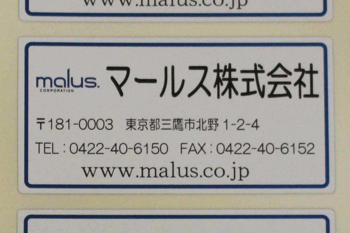 東京都 会社名シール 2017年10月27日 1000枚¥9800、版代¥3000。銀ケシタック;銀ネーマー(PET)#50μ、強粘、ラミネート透明PP#20μ、60×30mm(1R)、2色2;紺色、黒色。 前のページ へ 制作実績一覧 へ 次のページへ ラベルシールについて ■印刷■構成■素材(材質)■接着剤 オプション加工 ■ラミネート(PP貼り)■ハーフラミネート■ナンバーリング(連番)■ホットスタンプ(箔押し)■エンボス(浮き出し・型押し) 入稿メールアドレス info@rotaryprint.jp 新着情報(一覧はこちら) 2016.06.17 シールデザイン制作も承ります。1色¥1000~。カラー4色¥3000~。