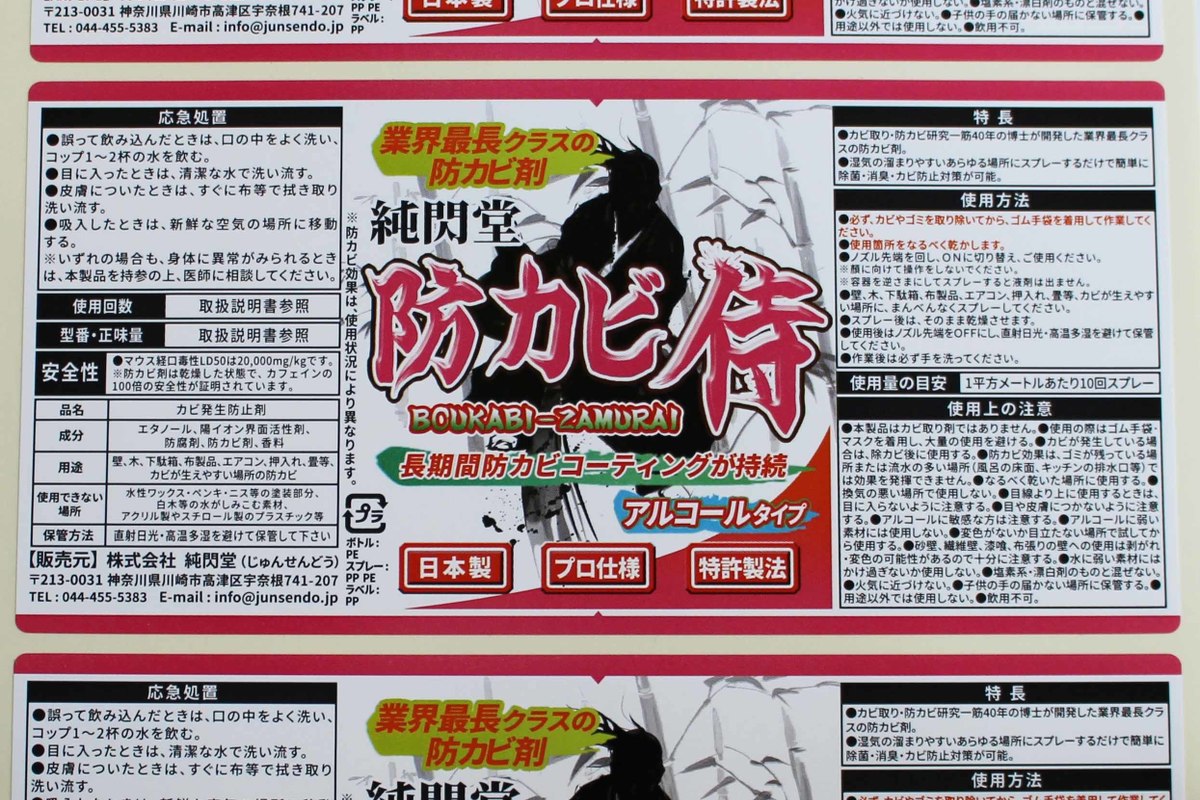 神奈川県 カビ防止剤シール 2017年11月02日 2000枚¥25000、版代¥8000。ユポタック#80μ、強粘、ラミネート無し、175×85mm(2R)、カラー4色 前のページ へ 制作実績一覧 へ 次のページへ ラベルシールについて ■印刷■構成■素材(材質)■接着剤 オプション加工 ■ラミネート(PP貼り)■ハーフラミネート■ナンバーリング(連番)■ホットスタンプ(箔押し)■エンボス(浮き出し・型押し) 入稿メールアドレス info@rotaryprint.jp 新着情報(一覧はこちら) 2016.06.17 シールデザイン制作も承ります。1色¥1000~。カラー4色¥3000~。